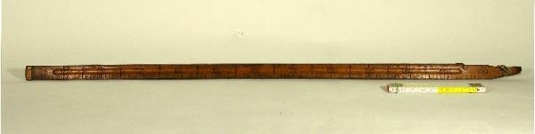 L'oggetto è costituito da un'asta con un'estremità rivestita di rame e l'altra assottigliata, a formare un manico. La scala graduata è incisa nel legno con numerazione ogni 10 centimetri, da 0 a 120 e graduazione ogni centimetro.