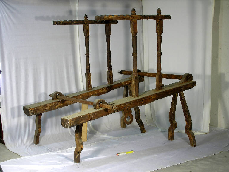 Il reperto è costituito dalla sola struttura portante di un telaio a mano, con il castello per i licci