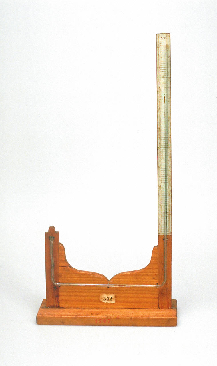 Il termometro differenziale di Leslie è un termometro ad aria. Lo strumento è posto su una base rettangolare di legno ed è costituito da due globi di vetro pieni d¿aria, oggi mancanti, uniti tramite un tubo ad U, fissato su un sostegno di legno, parzialmente riempito di un liquido colorato. Due scale sono marcate a mano in inchiostro nero su entrambe le facce del termoscopio. Le scale sono divise in gradi e le temperature sono scritte ogni 5 gradi. La scala sul davanti va da 0° a +100° ed è lunga 34 cm. La scala sul retro va da 0° a +100° ma è lunga 35,5 cm.