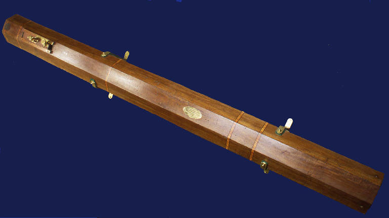 Negli ultimi decenni del Settecento e nei primi dell'Ottocento l'Osservatorio di Brera acquisì, oltre ad alcuni rifrattori, almeno una decina di riflettori. Questi telescopi erano dotati di specchi metallici ottenuti con leghe di particolare composizione atte a fornire un buon potere riflettente (dette genericamente metallo per specchi); non erano limitati da cromatismo come i cannocchiali del tempo e, avendo inoltre elementi ottici principali fino a 12 pollici di apertura e 17 piedi francesi di lunghezza focale, risultavano più potenti degli strumenti a lente. Alcuni furono acquisiti completi di montatura, mentre di altri furono fornite le sole ottiche con al più il tubo in cui erano alloggiate. A causa delle notevoli distanze focali degli specchi di maggiori dimensioni la costruzione della montatura dei telescopi, di tipo altazimutale, e della relative cupole pose agli astronomi di Brera delle serie difficoltà che di fatto impedirono un uso operativo di questi strumenti. Quasi tutti gli specchi e gli strumenti acquisiti in quest'epoca sono andati perduti, come riportano le annotazioni apposte all'"Inventario del 1921 con aggiornamenti". \nRimane parte di uno dei telescopi maggiori, restaurata nel 1996 dai sigg. Nello Paolucci e Domenico Gellera.\nÈ un tubo di legno pregiato, della lunghezza di cm 380.5. \nLa sezione del tubo è ottagonale e le facce opposte distano esternamente di 33 cm ed internamente di 30 cm. \nPresso un'estremità del tubo è ricavata una apertura rettangolare; a fianco dei lati maggiori di essa sono sistemate due guide che permettono il movimento parallelamente all'asse ottico della tavola porta oculare.\nLa corsa possibile è di una decina di cm da entrambi i lati di un punto sito a 54 cm da un bordo del tubo e 326.5 cm dall'altro. \nLa tavola, di legno, reggeva da un lato il tubo in cui poteva essere posizionato l'oculare e dall'altro, internamente al tubo e solidale con l'oculare, il supporto che portava lo specchietto newtoniano di rinvio, inclinato di 45 gradi sull'asse ottico del telescopio.\nAll'estremità inferiore del tubo si adatta una struttura metallica in fusione (n. inv. 1082), di forma ottagonale, che termina con un'apertura circolare di 25.5 cm collocata in un un piano normale all'asse ottico del telescopio. Questa parte, inchiavardata ai lati del tubo da viti passanti, oltre a conferire rigidità all'intera struttura lignea serviva a portare la cella in cui era collocato lo specchio principale. Su questo strumento manca la firma del costruttore che può tuttavia essere identificato analizzando dati ripresi da varie fonti d'archivio. La lunghezza del tubo indica anzitutto che esso apparteneva ad uno dei due maggiori telescopi acquisiti in quell'epoca: il 12 piedi del costruttore modenese Giovan Battista Amici (1786-1863), oppure il riflettore di pari focale ma di minore apertura (9 pollici e 1/2) di Giovanni Grisostomo Gualtieri (?-1852). \nTenendo presente il modo con cui la parte in fusione è fissata al tubo in legno, lo specchio non poteva essere alloggiato all'interno di questa, poichè ciò avrebbe impedito il fissaggio al tubo del gruppo specchio + parte in ghisa. Inoltre anche le lunghezze focali di entrambi gli specchi (Amici o Gualtieri) esigerebbero, per una posizione accettabile dell'oculare, che lo specchio principale fosse collocato esternamente alla parte di fusione. Infine l'apertura circolare di quest'ultima è pari al diametro del Gualtieri, ma non è compatibile con lo specchio d'Amici, di dimensioni maggiori, che avrebbe diaframmato.\nAnnotazioni inventariali relative agli anni 1834, 1837-1841 precisano che il tubo del telescopio d'Amici di 12 piedi era di latta verniciata. Questo dato concorda con il disegno (in scala) dello stesso strumento riportato nella nota di \n\n(continua nella scheda catalografica completa in allegato)
