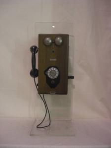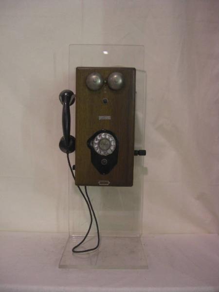 apparecchio telefonico selettivo con tipico disco combinatore a pulsante di sblocco, per linee omnibus