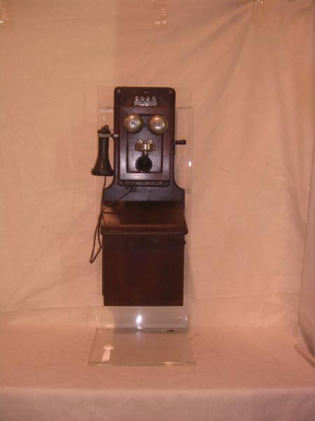 telefono, da parete, a batteria locale, chiamata a generatore con cassetta portapile per l'alimentazione del microfono