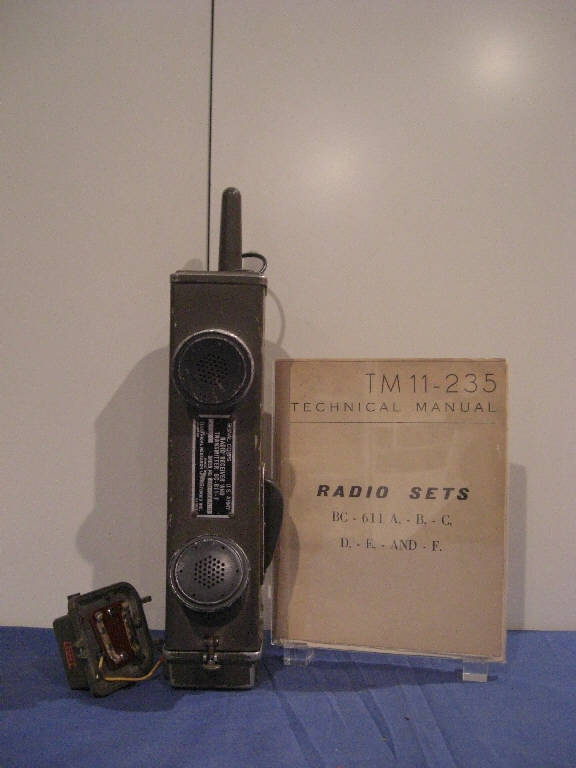 radioricetrasmettitore telefonico portatile detto "Walkie Talkie" nella gamma HF, tipo BC611. In uso presso i Signal Corps USA