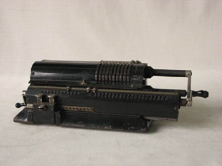 Calcolatrice in metallo verniciato di nero costituita da una base, una parte fissa che racchiude il meccanismo di ruote a pioli, un carrello del traspositore esterno e scorrevole. Al carrello\nNella parte alta si ha il registro di impostazione a dieci colonne con le relative leve di impostazione (per impostare il numero dei calcoli) e gli indicatori decimali. Ciascuna leva è collegata ad una delle ruote di pioli poste all'interno.\nNella parte bassa si hanno i due tabulatori del carrello (uno indicizza il carrello una decade a sinistra, l'altro a destra), e il tasto per sbloccare il carrello consentendone lo spostamento a destra e a sinistra. Sul lato destro è inserita una manovella collegata con tutte le ruote di pioli poste all'interno. L'organo di trasmissione è infatti costituito da un disco con nove scanalature radiali nelle quali scorrono dei pioli mobili ciascuno con un risalto laterale. Un secondo disco, mobile rispetto al primo, è dotato di una scanalatura circolare composta da due parti aventi raggio differente e collegate da un sottile gomito. Qui scorrono i risalti laterali e, in funzione del lato del gomito in cui si trovano, il piolo corrispondente sporgerà o meno rispetto al disco. In tal modo, la posizione del secondo disco, mobile, a determinare il numero di pioli sporgenti.\nIn mezzo si ha il carrello scorrevole sul quale si trovano il contagiri a undici colonne (che conta le rotazioni della manovella o indica il risultato delle divisioni, a seconda dell'uso) e il totalizzatore a venti colonne (dove si legge il risultato delle altre operazioni). Ciascuno di questi registri ha gli indicatori decimali. Ai lati del carrello sono inserite due piccole manovelle per l'azzeramento del contagiri e del totalizzatore.