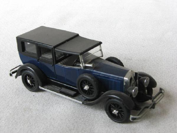 Modellino di automobile Isotta Fraschini tipo 8A coupè de ville in scala 1:43. Poggia in un contenitore in plastica trasparente nel quale è presente anche un foglietto illustrativo con la storia del modello di automobile..