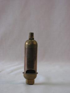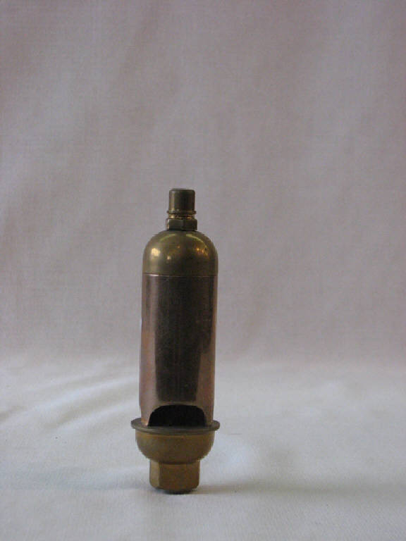 cilindro tubolare vuoto im ottone con parte superiore a punta e parte inferiore con 3 forature semicircolari ed estremità inferiore innestata in un tubo della condotta pneumatica.All'interno molla azionata dall'aria compressa