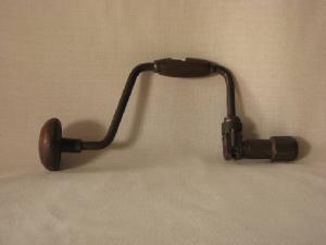 tondino in acciaio la cui parte centrale è sagomata ad U a manovella.. Ad una estremità un pomello in legno per la presa ed all'altra estremità è montato un mandrino come sede delle punte.Anche la manovella ( presa mobile ) è foderata in legno.