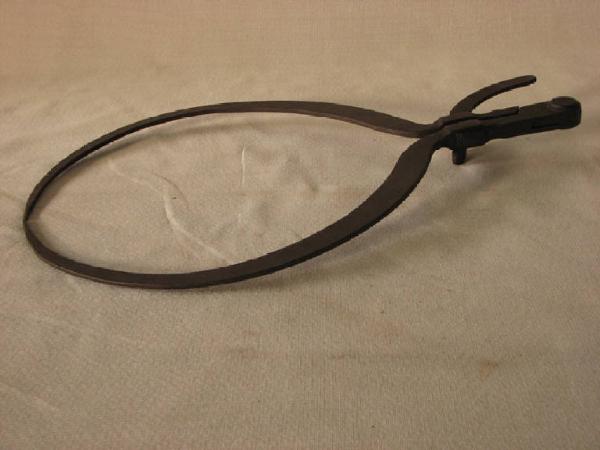 n° 2 aste in ferro con le estremità diritte che fungevano da manico al termine del quale erano incernierate per proseguire con una parte più lunga curva terminante a punta