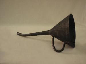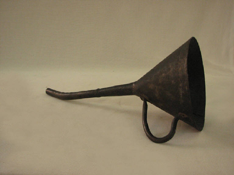 imbuto con manico ansato e becco lungo e leggermente curvo all'estremità