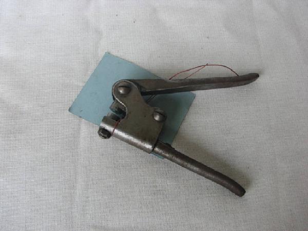 punzone a pinza con impugnatura in acciaio da operaio Impianti elettrici.Con matrice riportante la sigla FNM Officine elettriche Milano