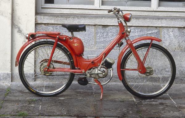 Ciclomotore con telaio in lamiera stampata, parafanghi e serbatoio verniciati di rosso. Al centro del telaio è montato un motore monocilindrico inclinato a due tempi, con trasmissione a catena e tubo di scarico sul fianco destro. Ai lati del motore sono situati i pedali. Il carter del motore è stato sezionato per motivi didattici. Al di sotto della sella è installato il serbatoio del carburante. Il ciclomotore è dotato cambio a due velocità comandato dalla manopola del manubrio. L'impianto frenante è a tamburo. La ruota anteriore è dotata di sospensione a biellette oscillanti, mentre la ruota posteriore è sorretta da un forcellone oscillante. Il ciclomotore è dotato di fanale anteriore, il fanalino di coda circolare e portapacchi posteriore. Il cavalletto reggimacchina è centrale.