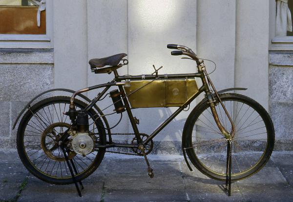 Motocicletta con telaio ciclistico e parafanghi, verniciati di verde con decorazioni dorate. Il motore monocilindrico verticale a quattro tempi è montato in corrispondenza del lato sinistro della ruota posteriore; la trasmissione è a presa diretta mediante un pignone sull'albero motore, azionante una ruota dentata, sistemata sul cerchione a raggi della ruota posteriore. La motocicletta inoltre è dotata anche di pedali e di trasmissione a catena, posta sul fianco destro. Il serbatoio in lamiera è appeso centralmente al tubo orizzontale del telaio. Entrambe le ruote sono dotate di freni a pattino e cavalletto.