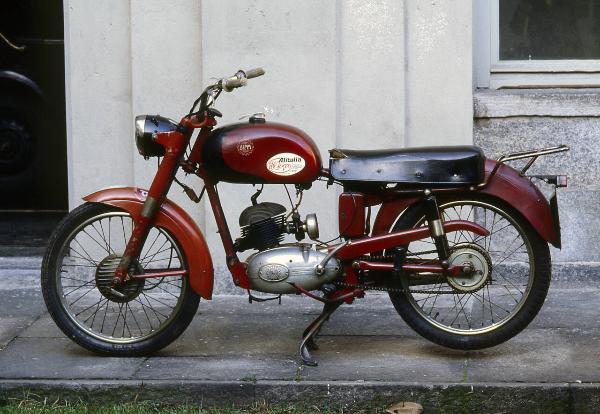 Motocicletta con telaio tubolare, parafanghi e serbatoio verniciati di rosso. Al centro del telaio è montato un motore monocilindrico inclinato a due tempi; il tubo di scarico è situato sul lato destro del veicolo. Al di sopra del motore si colloca il serbatoio del carburante, con la parte anteriore verniciata di nero. Il cambio a quattro marce è comandato da un pedale a bilanciere posto sul fianco destro. La trasmissione finale è a catena. La motocicletta è dotata di fanali anteriore e posteriore; sul fanale anteriore è posizionato il quadrante del tachimetro. La sospensione anteriore è costituita dalla forcella telescopica, mentre la sospensione posteriore avviene mediante due ammortizzatori telescopici sistemati sul forcellone. La motocicletta monta una sella lunga e un portapacchi sul parafango posteriore. Sul parafango anteriore e sul lato sinistro del serbatoio si trovano due adesivi pubblicitari.