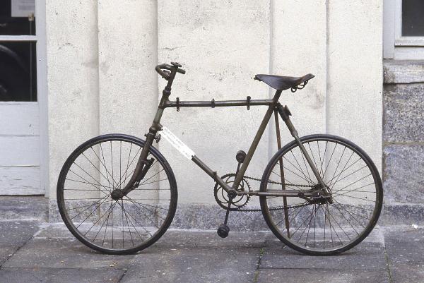 Bicicletta militare pieghevole con telaio tubolare a trapezio in acciaio, con verniciatura grigioverde; le cerniere per piegare il telaio sono situate sul tubo orizzontale e sul tubo obliquo. La bicicletta inoltre è provvista di molleggi sul telaio e sulla forcella: la forcella è molleggiata per mezzo di leve oscillanti e molle cilindriche, mentre il telaio presenta una sospensione telescopica con molla cilindrica in corrispondenza del nodo di sella. La bicicletta monta una sella in pelle con due molle posteriori. Il manubrio dritto è sprovvisto di manopole. Il veicolo dispone di un freno sulla ruota posteriore comandato a contropedale. Il funzionamento si basa su una trasmissione a catena sulla ruota posteriore, con un pignone a scatto fisso. La bicicletta appoggia su due ruote con cerchi e raggi tangenti metallici e gomme piene; la ruota anteriore conta 32 raggi, mentre la ruota posteriore presenta 36 raggi.