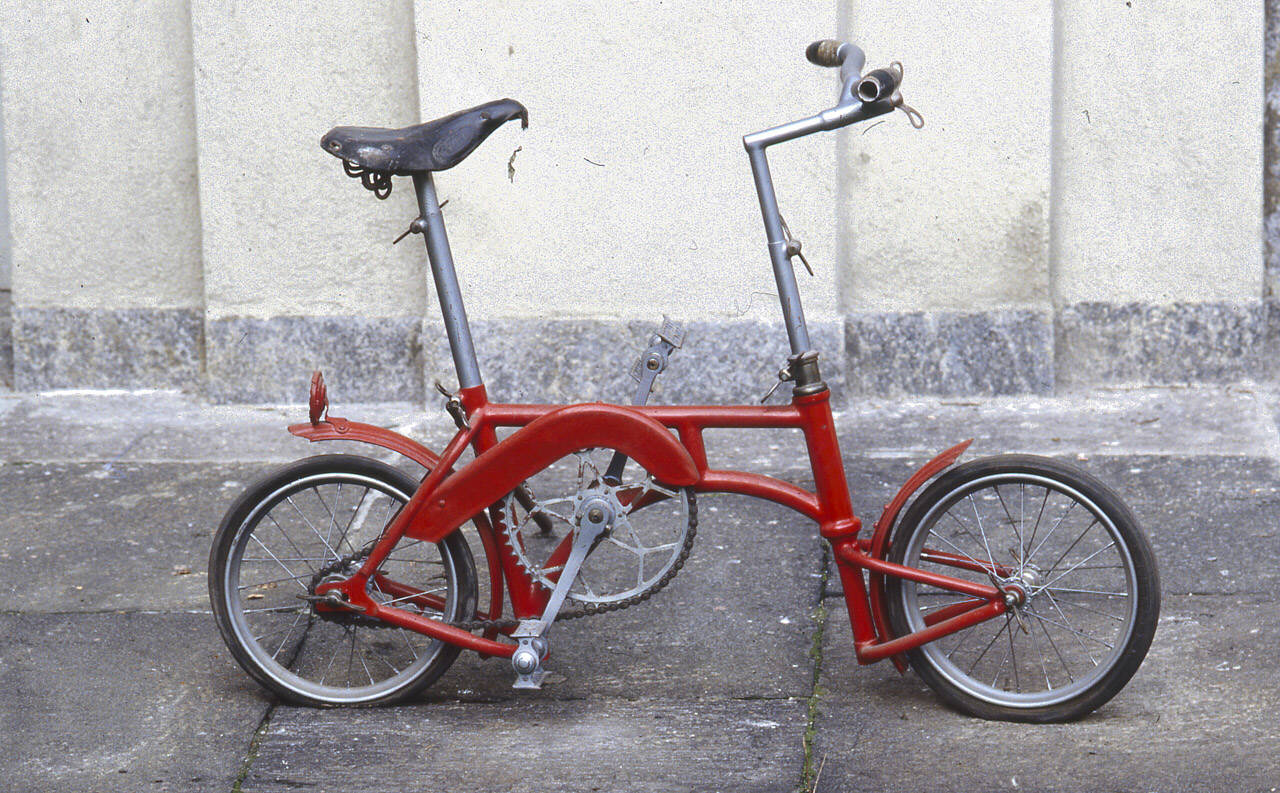 Bicicletta di piccole dimensioni con telaio tubolare, forcella, carter e parafanghi verniciati di rosso, mentre il cannotto della sella e il manubrio sono cromati; il tubo del telaio che unisce il cannotto dello sterzo al nodo del movimento centrale presenta un andamento curvilineo. Questa bicicletta permette la regolazione, per mezzo di dadi a galletto, dell'altezza del cannotto della sella e del manubrio; il manubrio inoltre presenta la possibilità di regolare anche l'ampiezza delle impugnature, provviste di manopole in celluloide. Il veicolo monta una sella molleggiata e imbottita, rivestita di pelle. Il freno agisce sulla ruota posteriore ed è comandato a contropedale. La bicicletta poggia su due ruote di uguale dimensione, dotate ognuna di 24 raggi tangenti e di gomme pneumatiche. La forcella dà la possibilità di girare all'indietro la ruota anteriore. Sul parafango posteriore è sistemato un rifrangente rosso di forma circolare. L'apparato motore è costituito da una trasmissione a catena sulla ruota posteriore.