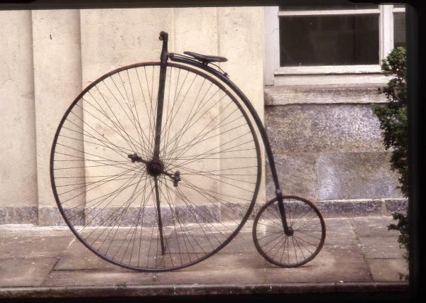 Biciclo da corsa con telaio tubolare in ferro e forcella in lamiera verniciati di nero. Una predellina situata nella parte posteriore destra del telaio consente di montare sulla sella, sospesa elasticamente su una balestra fissata sul tubo obliquo del telaio; la sella imbottita è rivestita di pelle. Il manubrio dritto presenta manopole tela cerata. Il funzionamento del biciclo si basa su due pedali regolabili con blocchetti in gomma nera, applicati all'asse della ruota anteriore. Le due ruote, entrambe con cerchio e raggi in metallo, sono provviste di battistrada in gomma piena, mentre i raggi sono tangenti ed incrociati; la ruota anteriore presenta 72 raggi, mentre la ruota posteriore ne conta 24. Il biciclo è sprovvisto di freni.