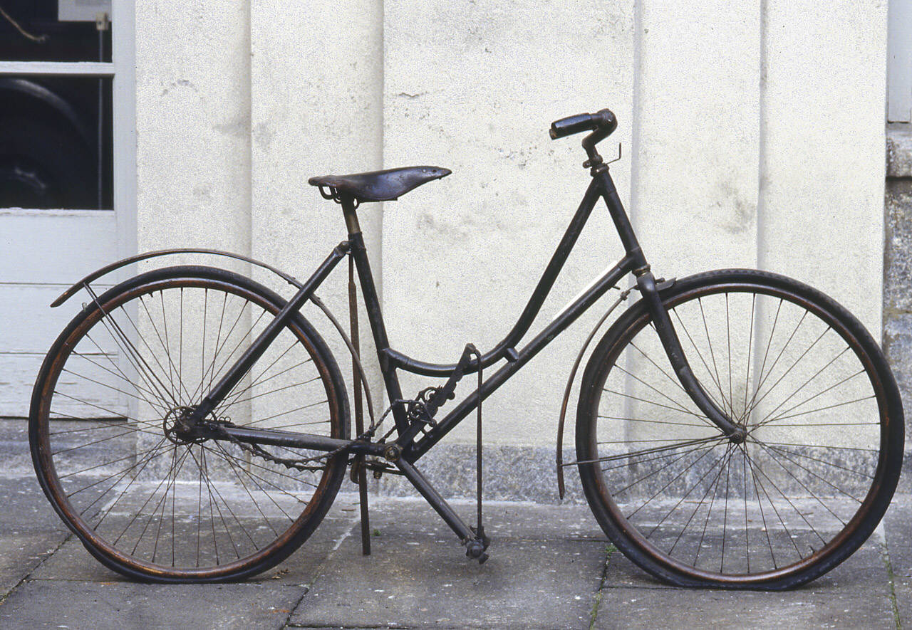 Bicicletta con telaio tubolare da donna e forcella in lamiera, verniciati di nero brillante; i parafanghi sono in legno. La bicicletta monta una sella rigida in cuoio, con molleggio posteriore, regolabile in altezza. Il manubrio da turismo, anch'esso regolabile in altezza, presenta impugnature in gomma nera; davanti al manubrio è posto il supporto portalume. Il funzionamento della bicicletta si basa su due leve azionate dai pedali; ogni leva, per mezzo di una catena, trasmette il moto alla ruota posteriore. Il segmento delle leve presenta cinque scanalature nelle quali è possibile fermare la catena in cinque diverse posizione per la regolazione del rapporto di trasmissione. Le due catene presentano, nella parte posteriore, una guida per facilitare l'avvolgimento sui rocchetti posti in corrispondenza dell'asse della ruota posteriore. La ruota poggia sue ruote con cerchi in legno e raggi tangenti in metallo, provviste di gomme pneumatiche; la ruota anteriore presenta 32 raggi, mentre la ruota posteriore conta 40 raggi.