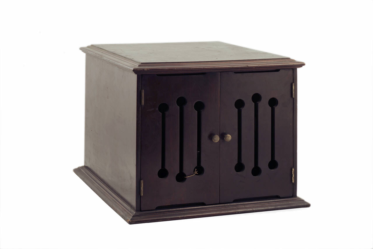 Amplificatore a tre valvole inserito in un mobile in legno a base rettangolare e modanatura corrente lungo la base e il lato superiore. Sul lato anteriore è presente una retina in tessuto che copre la cassa dell'altoparlante; due selettori a manopola comandano l'accensione e il volume. Sul lato posteriore si trovano due ante apribili traforate attraverso cui accedere al vano delle valvole. All'interno del vano, sono collocate tre prese per l'inserimento delle valvole e una serie di sei manopole