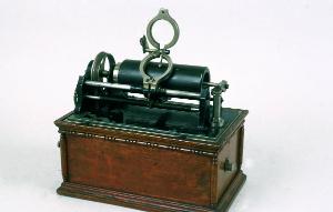 Il fonografo è costituito da una base in legno, all'interno della quale è situato il motore a molla, e da un piano superiore in ghisa, dove si trova il mandrino. La base presenta uno zoccolo modanato nella parte bassa e un fregio corrente lungo la parte superiore; ai quattro angoli sono situate decorazioni a colonna. Il motore a molla che si trova all'interno è azionato dalla chiave in ebanite, posta sul fianco sinistro dell'apparecchio. Il motore, per mezzo di una cinghia di trasmissione in pelle, mette in rotazione il volano in cui è innestato l'asse del mandrino. L'asse inoltre, mediante delle ruote dentate, mette in rotazione anche la vite senza fine che, ruotando, trascina il supporto della testina lungo la guida parallela al mandrino, posta sul lato anteriore. Il braccio di supporto della testina passa al di sotto del mandrino. Il braccio del fonografo ospita un doppio supporto per la testina. Il supporto destro del mandrino è apribile per l'inserimento del cilindro.