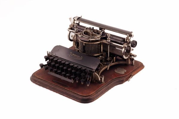 Macchina con telaio in metallo, fissata su una base di legno. La tastiera universale QWERTY presenta 30 tasti in gomma dura, di forma circolare e colore nero, disposti su tre file; la barra spaziatrice metallica è verniciata di nero. Alle spalle della tastiera, un frontalino in celluloide separa le leve dei tasti dalla torretta ospitante i cinematici. La macchina è sprovvista della navetta portacaratteri normalmente posizionata sulla sommità della torretta. Un punzone è sistemato sul retro del carrello, in corrispondenza del punto di battitura. Ai due lati della torretta, sullo stesso piano della navetta, si trovano due fusi per le bobine di nastro inchiostrato. In corrispondenza del punto di battuta è montata un'aletta metallica che permette di abbassare il nastro per controllare la scrittura. Il carrello monta due rulli rivestiti di gomma che costituiscono il sistema di alimentazione della carta. Nella parte inferiore del carrello, inoltre, è montata una retina metallica circolare per la sistemazione del foglio di carta. La macchina è accessoriata con un coperchio in legno per il trasporto