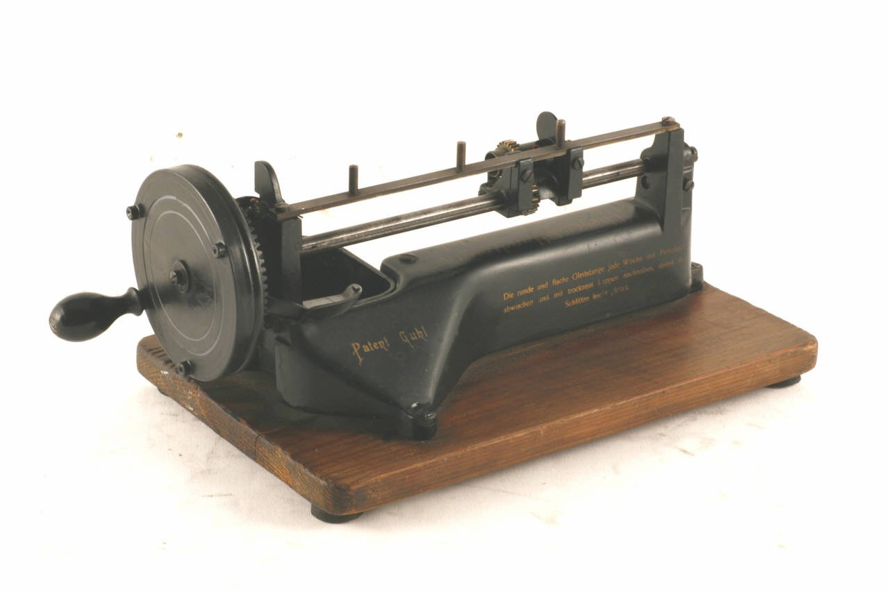 La macchina ha il corpo in ghisa verniciato di nero, fissato su una base in legno. Sul lato destro si trova una ruota dentata, azionata da una manovella, connessa alla fresa per mezzo di un pignone inclinato di 90 gradi. La ruota dotata inoltre mette in rotazione un albero lungo cui scorre l'elemento di supporto nel quale si colloca la matita da temperare; questo elemento è dotato di un ingranaggio per la rotazione della matita, azionato dall'albero. Il supporto inoltre è agganciato ad un binario, parallelo all'albero, lungo il quale scorre per adattarsi alla lunghezza della matita. Ai piedi della fresa si trova una vaschetta estraibile per la raccolta del truciolo.