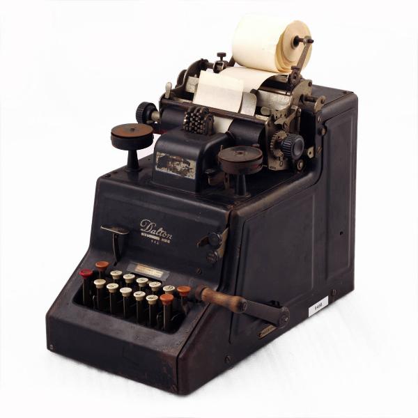 Addizionatrice con stampante, avente un corpo in metallo, verniciato di nero. E' dotata di una tastiera ridotta, costituita da dieci tasti in gomma dura bianca, disposti su due file; i bottoni dei tasti riportano, accanto alla numerazione progressiva da 0 a 9, anche il numero complementare per ciascun valore, segnato in rosso. Ai lati della tastiera si trovano quattro tasti con bottone rosso, due per parte, che costituiscono i comandi di sottrazione, ritorno, non addizione e ripetizione dell'operazione; i bottoni presentano iscrizioni in spagnolo. Sul lato destro della tastiera inoltre è posto il commutatore tra modalità elettromeccanica e modalità manuale. Nella parte superiore del lato anteriore dell'addizionatrice si trovano inoltre due pulsanti per il totale e il totale parziale e la leva per la correzione del valore impostato. Sul piano superiore sporge verticalmente la copertura del complesso dei blocchi di impressione per la stampa dei caratteri sul rotolo di carta; i blocchi di impressione sono costituiti da dieci segmenti paralleli in metallo disposti verticalmente, ognuno dei quali ospita dieci caratteri tipografici, numerati da 0 a 9 e spinti verso il punto di impressione da un martelletto azionato da leve. Il sistema di stampa è completato da due portabobine di nastro, dal rullo rivestito di gomma e dal supporto del rotolo di carta, installato sul retro della macchina; sul piano superiore inoltre è posto il tasto per escludere la stampa. Sul fianco destro dell'addizionatrice si trova la leva, con impugnatura in legno, per la totalizzazione delle cifre.