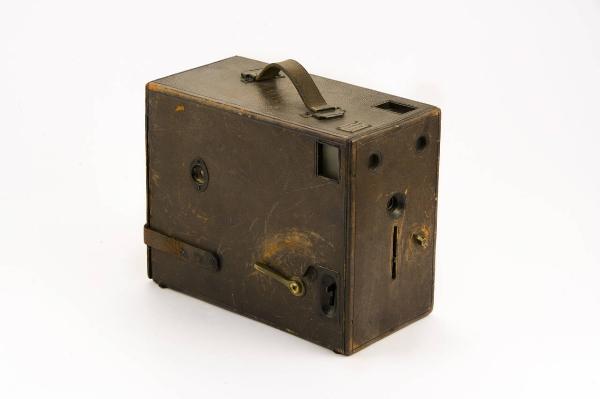 Questo apparecchio fotografico di piccole dimensioni, costruito in legno e ricoperto in pelle, ha forma parallelepipeda e maniglia in cuoio per il trasporto.\nSono presenti due mirini a riflessione per pose in verticale e in orizzontale.\nL'obiettivo, a fuoco fisso, è inserito all'interno della cassetta, in corrispondenza della parete frontale.\nDavanti all'obiettivo è inserita una lastrina in metallo con due fori di diverso diametro che fungono da diaframmi e possono essere inseriti mediante una levetta posta frontalmente sotto all'obiettivo.\nMediante una levetta posta lateralmente è possibile aprire e chiudere l'otturatore costituito da una lastrina rotante in metallo, per consentire l'ingresso della luce durante la posa.\nUna levetta posta frontalmente permette di selezionare due modalità di funzionamento dell'otturatore: istantanea o posa.\nVicino alla levetta di comando dell'otturatore è inserita un'altra leva per il comando del meccanismo di cambio lastre a caduta. Se mpre lateralmente è inserito un contapose automatico.\nLa parete posteriore, opposta all'obiettivo, è incernierata in alto ed apribile per permettere l'inserimento dei portalastra caricati con lastre in vetro (formato 9x12cm) e per la manutenzione.\nLa parete posteriore è tenita in posizione mediante un laccio in cuoio.