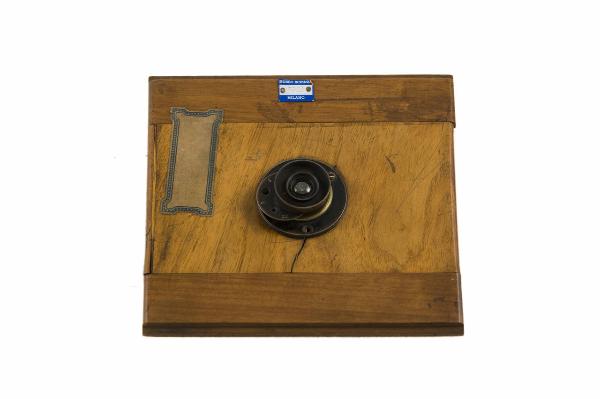 Questo obiettivo è montato su una base in legno di forma rettangolare che serviva per il posizionamento sul porta obiettivo di un apparecchio fotografico.\nL'obiettivo è fissato alla tavoletta in legno grazie ad una flangia circolare in metallo ed è costituito da un cilindro in metallo al cui interno sono inserite due combinazioni di lenti di piccolo diametro. L'elemento anteriore è costituito da un doppietto di lenti negativa-positiva incollate e quello posteriore da un doppietto di lenti positiva-negativa incollate.\nLateralmente, è presente una fessura sulla parete del cilindro nella quale è inserito il diaframma a disco rotante (revolver) ovvero una lastra metallica circolare sulla quale sono praticati 5 fori di ampiezza diversa. Questa lamina è girevole e permette di posizionare il diaframma desiderato al centro dell'obiettivo.\nSul diaframma sono indicate le aperture, in prossimità dei rispettivi fori: da f2 a f32.