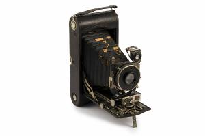Apparecchio fotografico verticale in legno e metallo ricoperto in pelle , di forma parallelepipeda, con bordi arrotondati e maniglia laterale.\nPremendo un tasto posto lateralmente, si apre lo sportello, incernierato nella parte bassa ed è possibile estrarre il soffietto in carta ricoperto in pelle nera.\nIl soffietto termina con un telaio in metallo sul quale è posizionato il porta obiettivo anch'esso in metallo. Il telaio porta obiettivo può scorrere su due guide metalliche posizionate nell'interno dello sportello stesso. Per spostarlo avanti e indietro lungo le guide, occorre ruotare l'apposita rotella posta sullo sportello.\nLo sportello è mantenuto aperto da due tiranti in metallo.\nLa lettura della distanza di ripresa può avvenire rispetto ad una scala graduata fissata sull'interno dello sportello, che riporta le distanze da 2 a 30m o da 6 a 100ft.\nLo sportello aperto poggia su una linguetta in metallo estraibile. Sullo sportello è presente un foro filettato per il posizionamento su un cavalletto.\nL'obiettivo è a fuoco fisso e la sua posizione può essere regolata verticalmente; al suo interno sono inseriti un diaframma iride ed un otturatore centrale.\nSotto all'obiettivo è possibile selezionare, mediante una levetta, l'apertura del diaframma a iride (da f6,3 a f45). \nRuotando un anello concentrico all'obiettivo, posto in corrispondenza dell'otturatore, si selezionano le modalità di scatto: T, B, oppure istantanea con velocità di scatto da 1/300 a 1 secondo.\nLa carica dell'otturatore avviene mediante una levetta posta vicino all'anello di regolazione e lo scatto avviene mediante un pulsante posto in prossimità dell'otturatore oppure con comando pneumatico (guaina e pompetta non sono presenti).\nSul porta obiettivo è fissato anche un mirino a riflessione orientabile.\nNella parte inferiore del telaio porta obiettivo è inserito un telemtro accoppiato all'otturatore.\nIl dorso dell'apparecchio fotografico si può togliere completamente per l'inserimento della pellicola in rullo A - 122 per formati 3 1/4x5 1/2" (formato cartolina).\nAd apparecchio aperto sono visibili l'interno del soffietto e i due vani laterali dove si inserisce la pellicola in rullo.\nL'avanzamento della pellicola avviene manualmente attraverso una farfalla posizionata lateralmente.\nSul retro sono presenti uno sportellino apribile dal quale si poteva accedere al retro della pellicola e una finestrella circolare con vetro rosso per la lettura diretta del numero di fotogramma dal retro della pellicola.