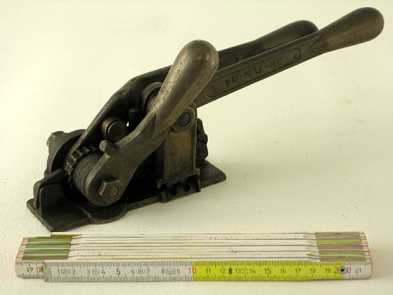 L'oggetto è realizzato in bronzo in unica fusione. Possiede una base in cui si infilano i due tratti contrapposti della reggia da stringere, una leva più corta per stringere, una leva più lunga per sigillare. Sulla leva più lunga una fusione: "RO-TLN-MA"