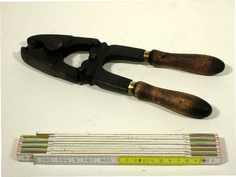 Lo strumento è costituito da una sorta di pinza formata da due manici che azionano un becco snodato, dotato di due piastre circolari con testo a rilievo le quali, schiacciando un frapposto sigillo in piombo, lasciano punzonature sulle due facce di esso: "TINTORIA PESSINA" da un lato e "COMO" dall'altro
