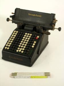 Una scritta in oro nella parte alta del fronte macchina e sulla fascia al piede della stessa: "Borroughs portable"