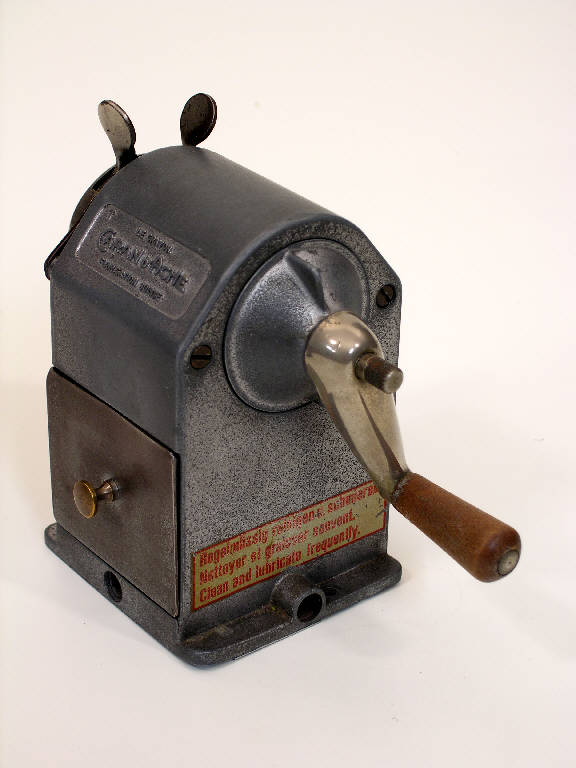 Lo strumento è costituito da un corpo in ferro. Sulla faccia anteriore una piastra (con bocca regolabile tramite due piccole leve) per l'inserimento della matita da temperare, e un sottostante cassetto per raccogliere i residui dell'operazione; sulla faccia posteriore una manovella per azionare lo strumento. Nella parte sommitale, curva, un'etichetta metallica: "Le crayon - CARAN D'ACHE - Fabrication suisse"
