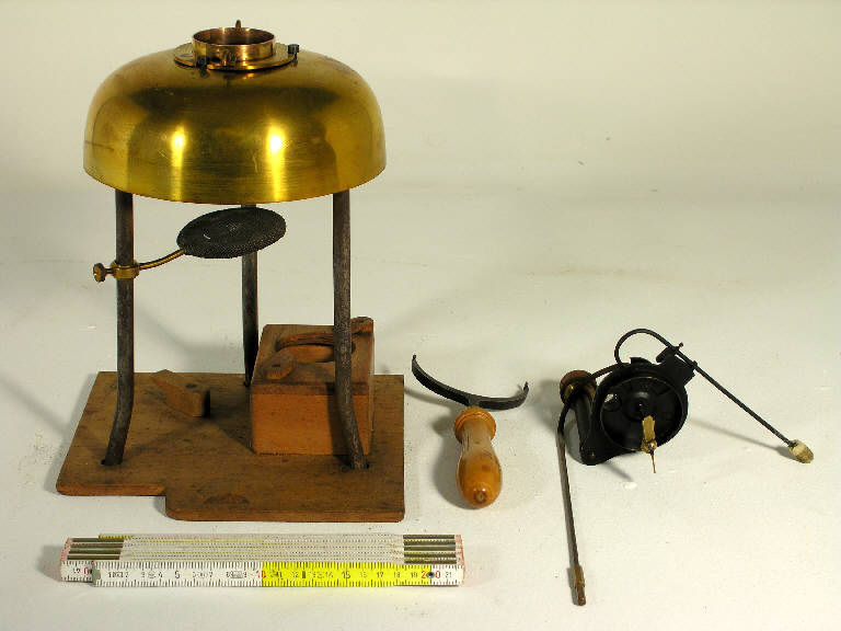 La parte centrale dello strumento è un vaso cilindrico di ottone contenente un indice di livello e un agitatore a palette, collocato in un involucro di ferro a parete spessa. Questa parte dell'apparecchio è circondata e protetta dall'irradiamento da un mantello in ottone a forma di cupola e si riscalda per mezzo di una lampada a tre becchi, con l'interposizione di una reticella metallica. Il coperchio del vaso cilindrico porta un termometro (mancante) graduato ordinariamente da 80°C a 250°C, il cui bulbo pesca nel liquido, ed una fiammella a gas che, girando un bottone, si fa avvicinare ad una finestrella che contemporaneamente si apre sul coperchio. Una seconda fiammella fissa serve a riaccendere la fiammella mobile qualora si dovesse spegnere a causa dell'esplosione.