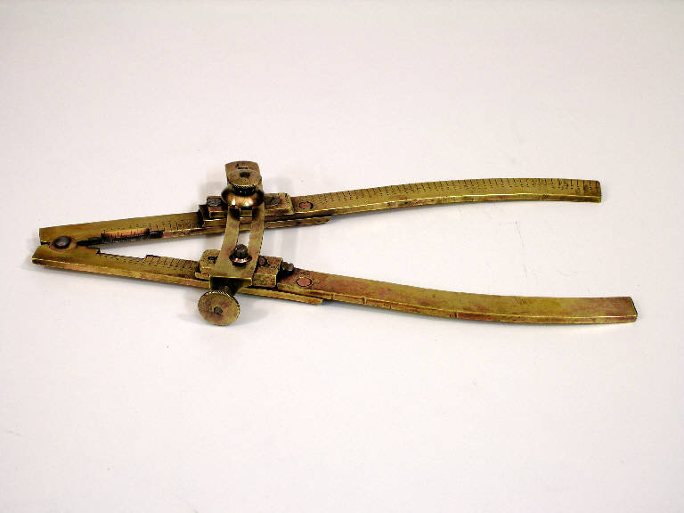 Lo strumento è costituito da due aste incernierate al vertice, collegate ad un terzo della lunghezza da un braccetto regolabile a vite e bombate alla fine. Entrambi i bracci sono graduati dal vertice fino al braccetto trasversale su una sola faccia, uno solo è graduato fino all'estremità libera, sul fronte dello strumento, mentre sul recto è l'altro braccio ad essere graduato similmente. Il tratto graduato da 6 (prima graduazione) a 15 è rinforzato da piastre riportate in acciaio