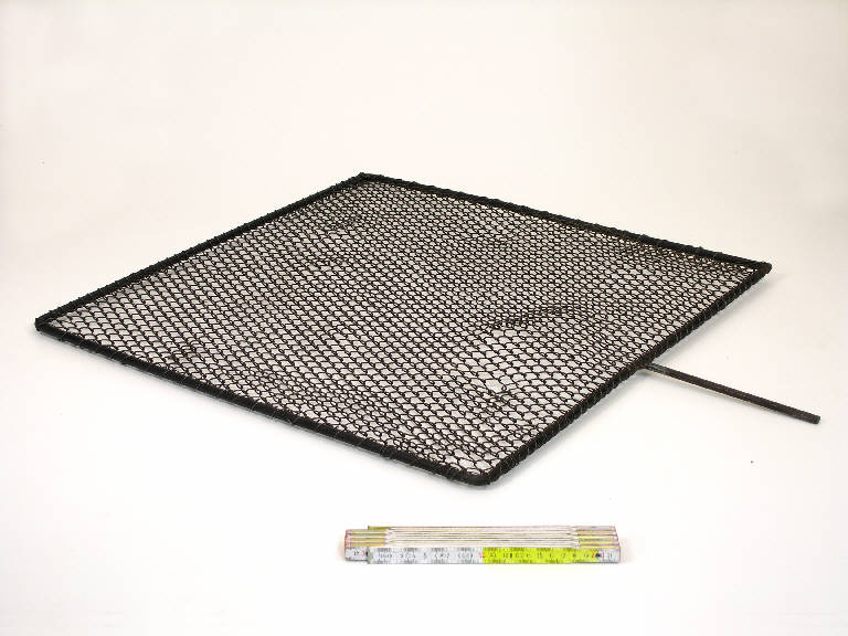 L'oggetto è costituito da una rete metallica fissata ad una cornice in tubolare di ferro. Un perno saldato alla cornice permette il montaggio dell'oggetto direttamente sul telaio