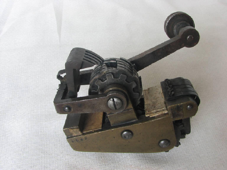 apparecchio contagiri numeratore composto da un telaietto metallico a forma rettangolare vuoto su cui sono montati degli alberini paralleli su cui sono calettati dei dischetti dentati numerati su cui si innestano bloccandoli dei pettini con punte di lunghezza differente a scalare.Una manovella con scanalature serve ad azzerare i numeratori.