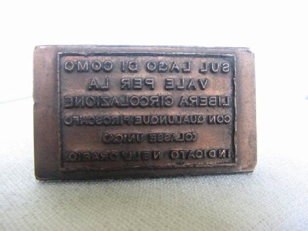 trattasi di una matrice rettangolare con scritte a rilievo da completare con inserti personalizzazione