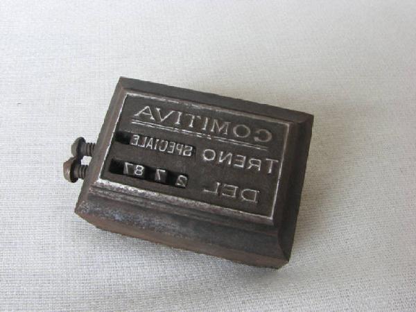 supporto in acciaio con viterie di montaggio su macchina stampatrice a forma di parallelepipedo con faccia superiore dotata di incastro a slitta con parziale predisposizione del biglietto e vano di completamento