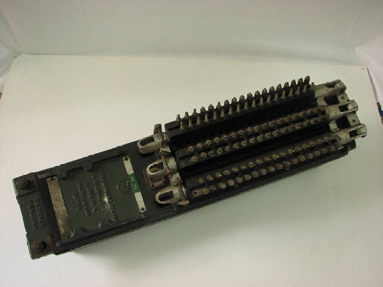 parallelepipedo in ferro la cui faccia superiore contiene per una metà una molteplicità di morsetti elettrici e per l'altra metà n°2 bobine indipendenti.