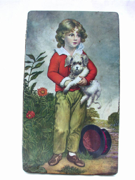 trattasi di una scatola metallica a forma di parallelepipedo, con coperchio , serigrafata con disegni vari su tutti i lati ad eccezione della base d'appoggio.Il motivo principale disegnato sul coperchio è rappresentato da un fanciullo vestito da " Inglesino "
