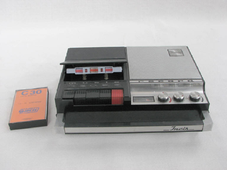 Apparecchio portatile di forma parallelepipeda con bordi arrotondati, in metallo con maniglia in plastica.\nAll'interno dell'apparecchio sono inseriti i dispositivi elettrici (tra cui 11 transistor e 4 diodi) e meccanici (tra cui il motorino a stabilizzazione elettronica) di funzionamento, sulla parete superiore si trovano tutti i dispositivi d'uso.\nLa parte sinistra è occupata dal vano per inserire il caricatore a nastro magnetico (musicassetta) con i comandi d'uso ovvero cinque tasti per fermare il nastro (stop), riavvolgimento veloce (60" per riavvolgere tutta la cassetta), avviare la riproduzione, avanzamento veloce, avviare la registrazione. Premendo il tasto stop con l'apparecchio non in funzione, si apre lo sportello del vano porta cassetta e si rendono visibili i due fusi dove si inserisce la cassetta stessa e che permettono l'avanzamento del nastro magnetico e la testina dove scorre il nastro. E' inserita una cassetta da registrare della durata di 30 min (15 per lato). E' presente anche la custodia in plastica della cassetta con foglietto per scrivere il contenuto registrato.\nNella parte destra si trova l'altoparlante protetto da una lamina metallica forata e i comandi di regolazione: volume di registrazione, volume di riproduzione, toni, con relativo indicatore visivo.\nLateralmente si trovano una presa a cinque poli per il collegamento di un microfono o di un radioricevitore, una presa a due poli per il collegamento di un altoparlante esterno, una boccola per il collegamento ad un alimentatore o all'auto ed una presa per la connessione di un cavo di rete. Può funzionare con cinque batterie da 1,5V.\nSotto all'apparecchio si ha un trimmer per la regolazione della tensione di alimentazione e un vano porta fusibile.\nCaratteristiche tecniche:\npotenza d'uscita 1,5W\nrisposta di frequenza da 50Hz a 10KHz ± 3dB