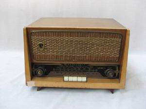 Apparecchio in legno, di forma parallelelpipeda e poggiante su sostegni in legno.\nLa parte superiore presenta uno sportello apribile all'interno del quale è inserito il giradischi.\nIl giradischi è costituito da un piatto girevole ed un'asta rotante sulla quale è collocata la puntina. Il piatto girevole è coperto da un tappetino circolare in gomma.\nUna rotella permette di selezionare la velocità di rotazione del piatto per dischi a 78, 45, 33, 16 giri/min.\nE' inoltre presente un dischetto in plastica da inserire al centro del piatto girevole.\nLa parete frontale dell'apparecchio è invece occupata dall'altoparlante e dai dispositivi d'uso.\nNella parte alta della parete frontale troviamo un altoparlante ellittico ricoperto da tessuto intrecciato e nella parte bassa i comandi per l'accensione e la sintonizzazione.\nDi fianco all'altoparlante è inserito l' indicatore visivo di sintonia "occhio magico".\nLa rotella di sinistra permette l'accensione e la regolazione del volume e la regolazione dei toni bassi e acuti, la rotella di destra è il comando di sintonia e permette di selezionare la frequenza desiderata che viene letta sul quadrante inserito tra le due rotelle. Sul quadrante sono indicati i nomi di alcune località e le frequenze. Si trovano tre scale di lettura delle lunghezze d'onda: per onde medie (da 550 a 200m), per onde corte (da 50 a 20m) e per modulazioni di frequenza FM (da 88 a 100 MHz).\nNella parte bassa del profilo dell'apparecchio sono inseriti cinque pulsanti per le selezioni delle gamme d'onda, della ricezione da fonografo esterno, della ricezione audio TV.\nDal retro fuoriesce il cavo di alimentazione di rete. \nLa parete posteriore, con fessure per l'areazione, è apribile e permette la visione dell'interno dell'apparecchio.\nAll'interno sono visibili le 7 valvole, il circuito supereterodina, l' altoparlante e il meccanismo di funzionamento del giradischi.
