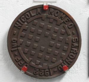 Disco in ferro fuso con superficie a rilievo. Lo spessore presenta due diversi diametri. ??????????????????????