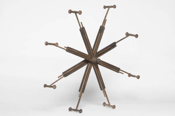 Aspino a 8 appoggi. La parte terminale di ciascun braccio si infila entro la parte fissa, in apposita rotaia. Un sorta di molletta elastica preme sul terminale contribuendo a fissarne la posizione