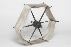 Aspino a sei appoggi formato dalla struttura centrale, in legno tornito, da cui si dipartono i raggi fissi, in ferro. La terminazione mobile dell'aspo scorre sulla parte fissa con direzione leggermente divergente: lo scorrimento reciproco delle parti, e quindi la giusta ampiezza dell'aspo, vengono fissati sforzando verso il centro un anellino di ferro