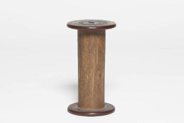 Rocchetto con anima in legno e flange in materiale sintetico. Possiede un canale passante lungo l'asse, per il posizionamento sul fuso del filatoio. I 7 oggetti della serie sono singolarmente contrassegnati con lettere da A a G