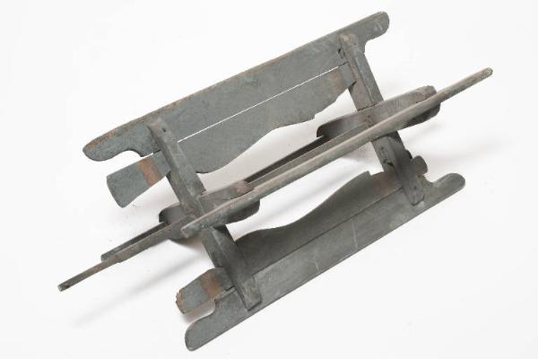 L'oggetto è un aspo a 4 appoggi, interamente in legno tranne il perno di rotazione, che è in ferro. Gli oggetti della serie sono 9, identificati singolarmente con lettere da A a I