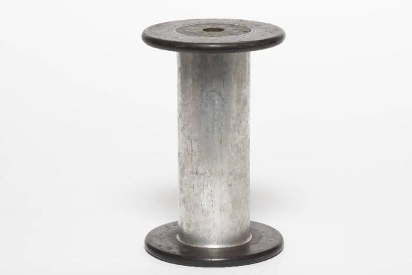 Rocchetto con anima in materiale sintetico rivestito di metallo cromato e flange in materiale sintetico. Sulla flangia inferiore: "M.Scaglia Spa - 1959 - Brev. 518939I rocchetti sono contenuti in scatole. A: n°30; B: n°40; C: n°40