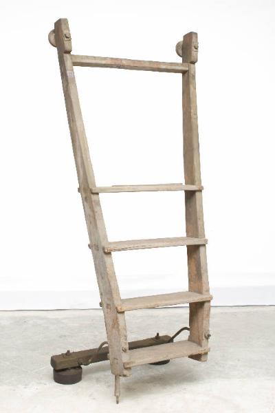 L'oggetto è una scala a 5 gradini e dalla particolare forma: blandamente convessa e molto ampia alla base, va restringendosi e assumendo andamento leggermente concavo verso l'alto. La forma è studiata per potersi appoggiare saldamente, in alto, al piantello, fornendo contemporaneamente uno stabile sostegno al filatore. Particolare è anche la distanza particolarmente ampia fra il primo gradino in basso e i successivi, che sono invece equidistanti tra loro.